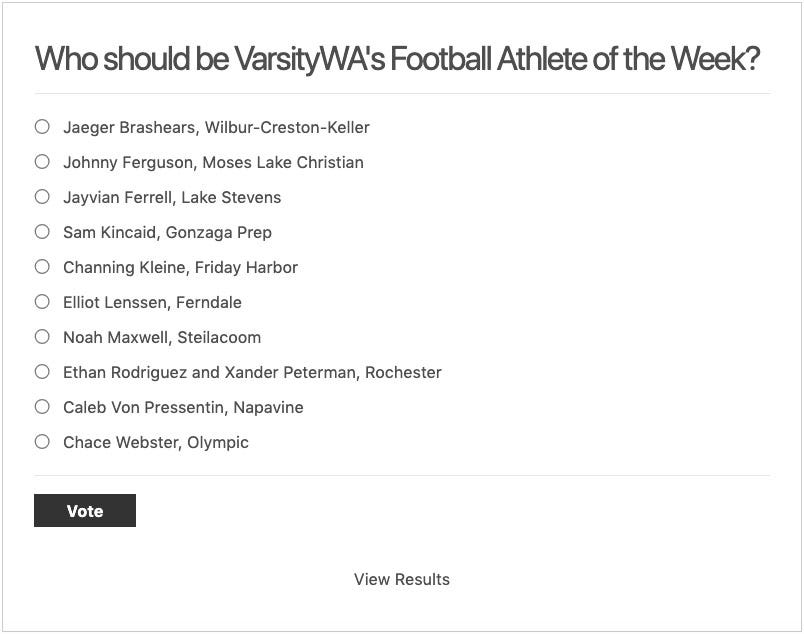Vote for VarsityWA's Football Athlete of the Week, Week 10