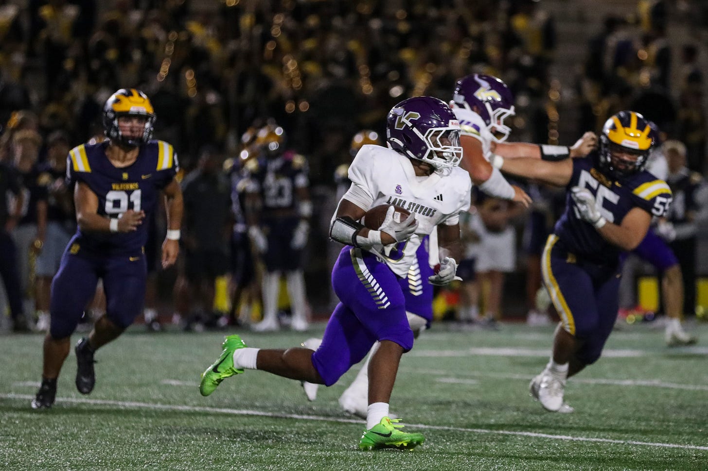 Jayvian Ferrell, Lake Stevens: Vikings rolled up 512 yards on the ground — and this junior led the charge with 243 yards on 19 carries, scoring four touchdowns in a 56-28 victory over Woodinville in state play-in game.
